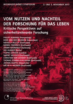 Im interdisziplinären Symposium werden die Erfahrungen „aktiver“ Forscherinnen und Forscher mit fachwissenschaftlichen Perspektiven auf das Thema sicherheitsrelevante Forschung zusammengeführt, um in nationaler wie internationaler Perspektive Maßnahmen zur Verhinderung von Forschungsmissbrauch diskutieren zu können.