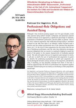 Der Vortrag wird im Rahmen der internationalen BMBF-Klausurwoche "Professional Ethics at the End of Life. International Comparisons" des Greifswalder Instituts für Ethik und Geschichte der Medizin im Alfried Krupp Wissenschaftskolleg stattfinden. Beginn ist 18 Uhr. Alle Infos finden Sie hier.
